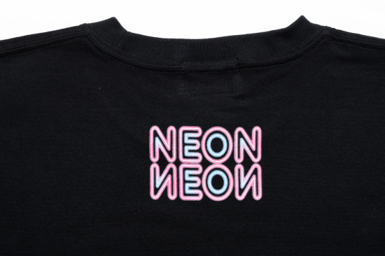 NEONNEONのシグネーチャーロゴを胸、背中にプリントしました!これがNEONNEONのロゴなので、多くの人たちに着てもらって世界中に広まってほしい!そう願っています!